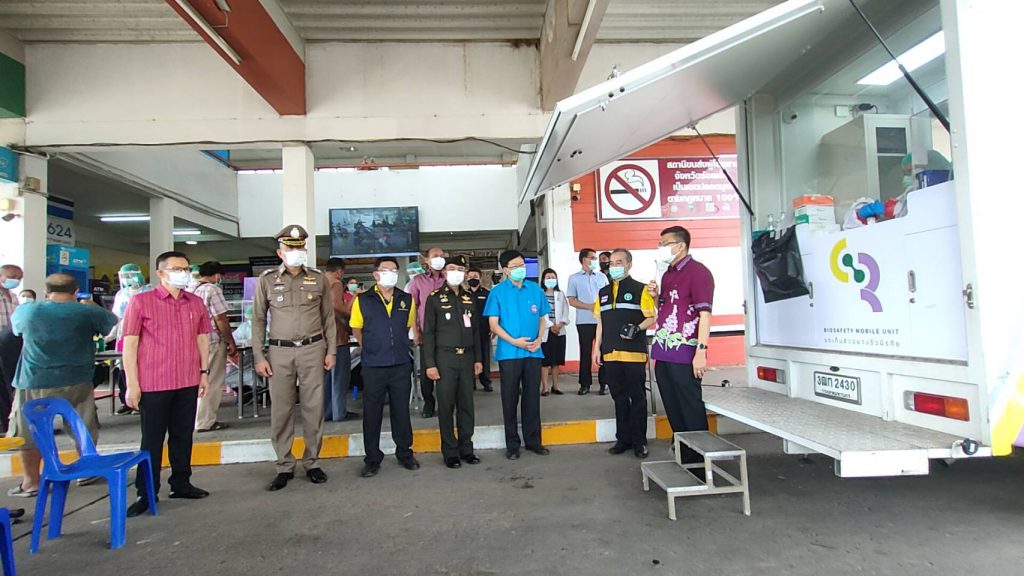 วันนี้ 7 พ.ค.64 ที่ สถานีขนส่งผู้โดยสารจังหวัดร้อยเอ็ด นายชยันต์ ศิริมาศ ผู้ว่าราชการจังหวัดร้อยเอ็ด เป็นประธานนำรถ เก็บตัวอย่างชีวนิรภัยพระราชทาน ซึ่งได้รับการสนับสนุนรถเก็บตัวอย่างชีวนิรภัย จากสำนักงานควบคุมโรคติดต่อ เขต 7 จังหวัดขอนแก่น คัดกรองหาผู้ติดเชื้อโควิด-19 เชิงรุก โดยมี คณะกรรมการควบคุมโรคติดต่อจังหวัดร้อยเอ็ด เจ้าหน้าที่ และหน่วยงานที่เกี่ยวข้อง เข้าร่วมการตรวจในครั้งนี้