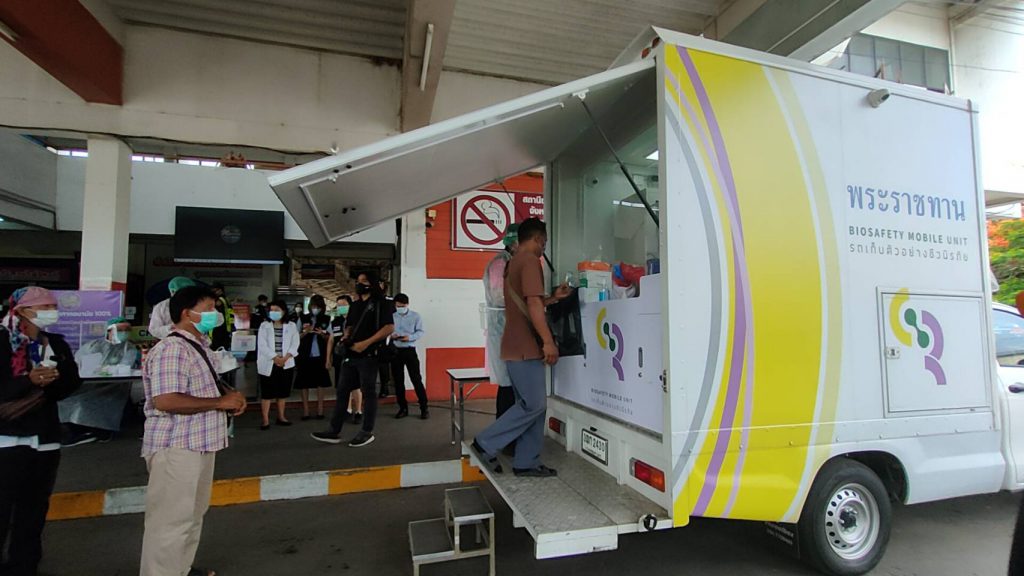 นายชยันต์ ศิริมาศ ผู้ว่าราชการจังหวัดร้อยเอ็ด กล่าวว่า ตามที่พระบาทสมเด็จพระเจ้าอยู่หัว ทรงมีพระมหากรุณาโปรดเกล้าฯ พระราชทานรถเก็บตัวอย่างชีวนิรภัยให้สำนักงานควบคุมโรคติดต่อ เขต 7 จังหวัดขอนแก่นนำมาให้บริการตรวจคัดกรองเชิงรุกหาเชื้อโควิด-19 ให้กับประชาชนในพื้นที่เสี่ยงของจังหวัดร้อยเอ็ด โดยจัดหน่วยเคลื่อนที่ให้บริการเชิงรุกเก็บตัวอย่างส่งตรวจหาเชื้อโควิด-19 ในพื้นที่จังหวัดร้อยเอ็ด โดยนำรถพระราชทานเก็บตัวอย่างชีวนิรภัย จำนวน 1 คัน พร้อมด้วยเจ้าหน้าที่จากโรงพยาบาลร้อยเอ็ด และหน่วยงานที่เกี่ยวข้อง เข้าร่วมการตรวจ บริการเชิงรุก ให้การบริการ ตรวจคัดกรอง คนขับรถโดยสาร มอเตอร์ไซค์รับจ้าง รวมทั้งประชาชนที่มาใช้บริการรถขนส่ง เพื่อให้ทุกคนี่เกี่ยวข้องกับการเดินทาง ผ่าน บขส.ร้อยเอ็ด ได้รับการคัดกรองเข้มข้น ป้องกันการแพร่ระบาดและการติดเชื้อ ใน บขส.ร้อยเอ็ด ซึ่งถือเป็นพื้นที่สาธารณะ เพื่อความปลอดภัย ของทั้งผู้โดยสาร ผู้ใช้บริการ เจ้าหน้าที่ประจำรถ และผู้ขับขี่จักรยานยนต์รับจ้าง เพื่อป้องกัน หากมีเชื้อไม่ให้ติดต่อผู้เดินทางที่มาใช้บริการ และป้องกันนำเชื้อไปติด คนในครอบครัว