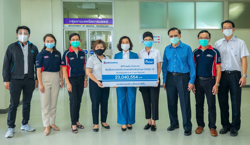 เมื่อวันที่ 14 พ.ค.2564นางสาวจิราพร ขาวสวัสดิ์ ประธานเจ้าหน้าที่บริหารและกรรมการผู้จัดการใหญ่ บริษัท ปตท. น้ำมันและการค้าปลีก จำกัด (มหาชน) หรือโออาร์ และตัวแทนของผู้แทนจำหน่ายสถานีบริการน้ำมัน พีทีที สเตชั่น ในเขตกรุงเทพมหานครร่วมมอบเงินบริจาคจำนวน 1,000,000บาทให้กับโรงพยาบาลสิรินธร โดยมีนายแพทย์ยุทธนาเศรษฐนันท์รองผู้อำนวยการโรงพยาบาลสิรินธรเป็นผู้รับมอบซึ่งเงินจำนวนดังกล่าวเป็นเงินที่ผู้แทนจำหน่ายสถานีบริการน้ำมัน พีทีที สเตชั่น ในเขตกรุงเทพมหานครได้ร่วมใจกันบริจาคและโออาร์ร่วมสมทบทุน379,000บาท พร้อมกันนี้ ผู้แทนจำหน่ายสถานีบริการน้ำมัน พีทีที สเตชั่น ใน 77 จังหวัดทั่วประเทศ ยังได้ร่วมมอบเงินบริจาคให้กับโรงพยาบาลต่างๆ ในพื้นที่จังหวัดของตนเอง รวมจำนวน 15,061,554บาทโดยผู้แทนจำหน่ายสถานีบริการน้ำมัน พีทีที สเตชั่นในภาคตะวันออกเฉียงเหนือ มอบเงินบริจาค รวม 6,181,000 บาท และโออาร์ได้ร่วมสมทบทุนให้แต่ละจังหวัดอีกจังหวัดละ 100,000 บาท