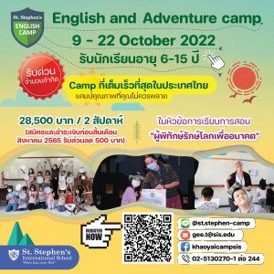ร.ร.นานาชาติเซนต์สตีเฟ่นส์เปิดรับสมัครคอร์สภาษาอังกฤษ ช่วงเสาร์ – อาทิตย์ นักเรียนอายุ 3-5 ปีทดลองเรียนฟรี! อายุ 6-15 ปี ทดสอบภาษาอังกฤษฟรี