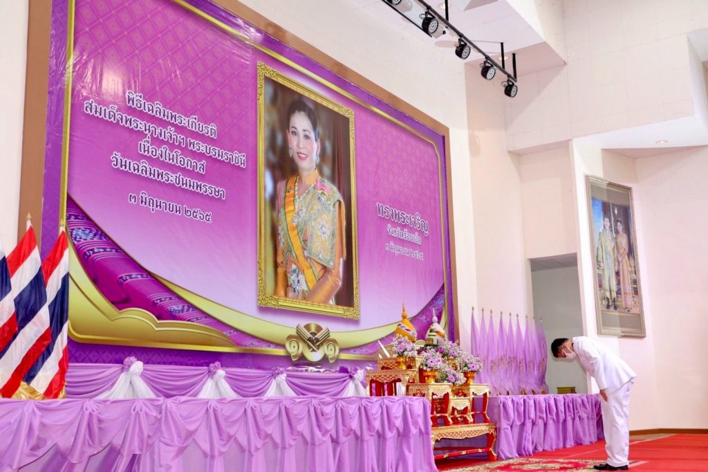 โดยจังหวัดร้อยเอ็ด ได้จัดกิจกรรมเฉลิมพระเกียรติสมเด็จพระนางเจ้าฯ พระบรมราชินี เนื่องในโอกาสวันเฉลิมพระชนมพรรษา พร้อมกับส่วนกลาง ซึ่งประกอบด้วย พิธีถวายราชสักการะและวางพานพุ่ม พิธีจุดเทียนถวายพระพรชัยมงคล และพิธีทำบุญตักบาตรถวายพระราชกุศล นำโดยผู้ว่าราชการจังหวัดร้อยเอ็ด หน้าส่วนราชการ ข้าราชการ ภาคเอกชน ประชาชน นำข้าวสารอาหารแห้ง มาร่วมพิธีทำบุญตักบาตร แด่พระสงฆ์ เพื่อเฉลิมพระเกียรติสมเด็จพระนางเจ้าสุทิดา พัชรสุธาพิมลลักษณ พระบรมราชินี