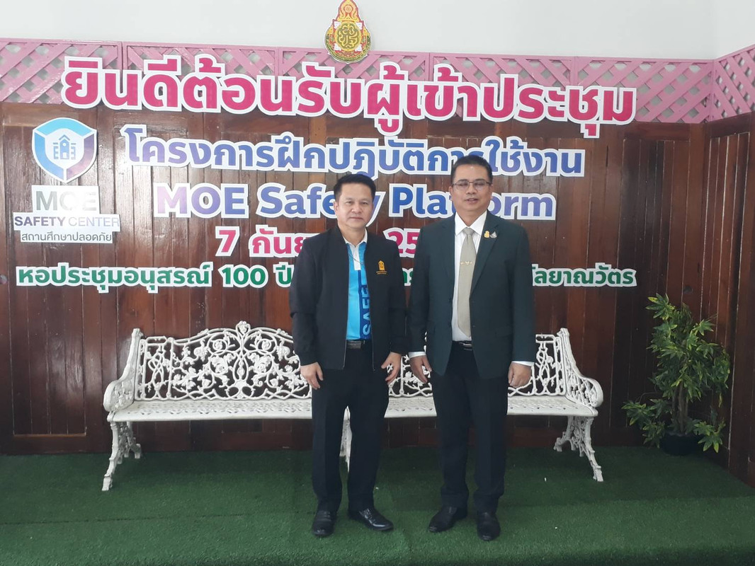 ด้าน นายเทอดชาติ ชัยพงษ์ ผู้ช่วยเลขาธิการคณะกรรมการการศึกษาขั้นพื้นฐาน กล่าวว่าโครงการฝึกปฏิบัติการใช้งาน MOE Safety Platform สำหรับตัวแทนคณะกรรมการสภานักเรียน ครูที่ปรึกษาสภานักเรียน เจ้าหน้าที่ SC Operator และเจ้าหน้าที่ SC Action ของสำนักงานเขตพื้นที่การศึกษาและสถานศึกษาในสังกัดสำนักงานเขตพื้นที่การศึกษามัธยมศึกษาขอนแก่น ในวันนี้กระทรวงศึกษาธิการ โดยน.ส.ตรีนุช เทียนทอง รัฐมนตรีว่าการกระทรวงศึกษาธิการ ได้กำหนดความปลอดภัยให้เป็นนโยบายสำคัญเร่งด่วนของกระทรวงศึกษาธิการ ซึ่งเป็นความท้าทายอย่างยิ่ง ที่จะต้องหาแนวทางทำอย่างไรให้สถานศึกษาเป็นมากกว่าสถานที่ให้ความรู้ แต่ยังต้องเป็นสถานที่ที่อยู่แล้วมีความสุข มีความปลอดภัยด้วย นายเทอดชาติ กล่าวเสริมด้วยว่า จึงได้มีการนำระบบเทคโนโลยีสารสนเทศเข้ามาช่วยส่งเสริม สนับสนุน ให้เกิดความสะดวกรวดเร็ว สำหรับการบริหารจัดการความปลอดภัยสถานศึกษา เพื่อให้เข้าถึงนักเรียน ครู ผู้ปกครอง และประชาชนทั่วไปสามารถแจ้งเหตุความไม่ปลอดภัยได้อย่างทั่วถึงและรวดเร็วมากขึ้น โดยผ่านการใช้แอปพลิเคชัน MOE Safety Center นอกเหนือจากระบบมาตรฐานความปลอดภัยที่พัฒนาขึ้นแล้วกระทรวงศึกษาธิการ ยังได้รับความร่วมมือจาก 8 กระทรวง และอีก 2 หน่วยงาน ประกอบด้วย กระทรวงกลาโหมกระทรวงมหาดไทย กระทรวงสาธารณสุข กระทรวงการพัฒนาสังคมและความมั่นคงของมนุษย์ กระทรวงดิจิทัลเพื่อเศรษฐกิจและสังคม กระทรวงคมนาคม กระทรวงทรัพยากรธรรมชาติและสิ่งแวดล้อม กระทรวงยุติธรรม สำนักงานตำรวจแห่งชาติ และสำนักนายกรัฐมนตรี ในการลงนามบันทึกข้อตกลงความร่วมมือโครงการ “SAFEสถานศึกษาปลอดภัย” ซึ่งเป็นจุดเปลี่ยนที่สำคัญสำหรับการศึกษาไทยอีกครั้งหนึ่ง ที่ได้ร่วมมือ