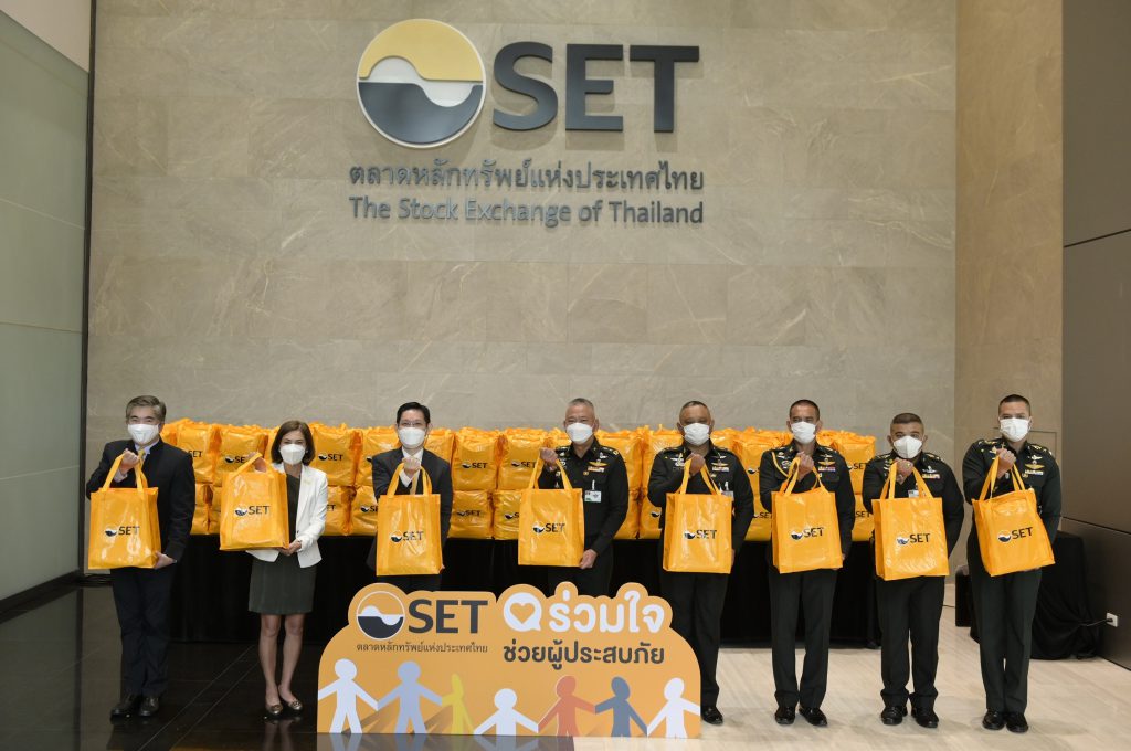 รองรักษ์ พนาปวุฒิกุล รองผู้จัดการ หัวหน้าสายงานกฎหมาย และดูแลกลุ่มงานเลขานุการองค์กรและกำกับองค์กร รวมทั้งฝ่ายบริหารกิจกรรมเพื่อสังคม ร่วมด้วยเพทาย เพชรรัตน์ และกีรติ โกสีย์เจริญ ผู้ช่วยผู้จัดการ ตลาดหลักทรัพย์แห่งประเทศไทย มอบถุงยังชีพ จำนวน 500 ชุด แก่กองบัญชาการกองทัพไทย เพื่อนำไปช่วยเหลือผู้ประสบอุทกภัยในพื้นที่ต่างๆโดยมี พลโท ธีรพงศ์ ปัทมสิงห์ ณ อยุธยา เจ้ากรมกิจการพลเรือนทหาร กองบัญชาการกองทัพไทย เป็นผู้รับมอบ