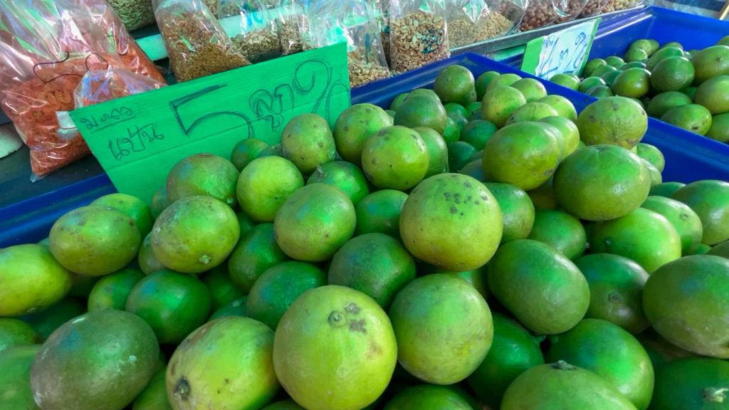 มะนาวขอนแก่นแพงรับปีใหม่ แป้นรำไพเบอร์ 3 ขายปลีกลูกละ 5 บาท หลังราคาส่งทะลุกระสอบละ 1,000 บาทแล้ว ขณะที่พ่อค้าผัดไทยยอมรับต้องฝานชิ้นเล็กลง เพราะไม่สามารถใช้อะไรมาแทนมะนาวในการกินกับผัดไทยได้