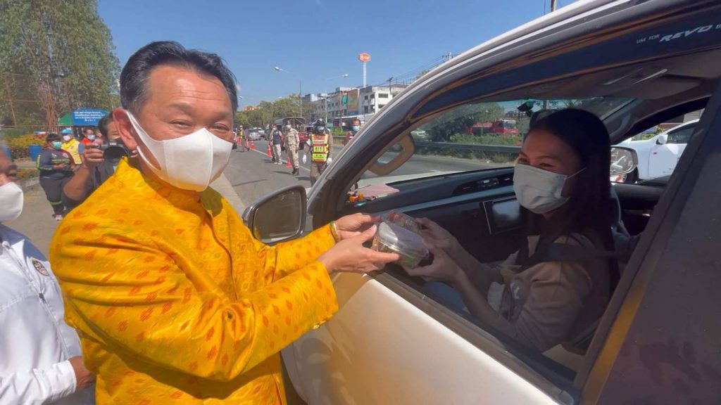ขอนแก่นแจกซูชิหม่ำ-เบอเกอร์หม่ำ-ขนมจีบหม่ำ ให้กับนักเดินทางได้อิ่มท้องคลายความเหนื่อยล้าจากการขับขี่ ขณะที่สภาพการจราจรติดหนึบ