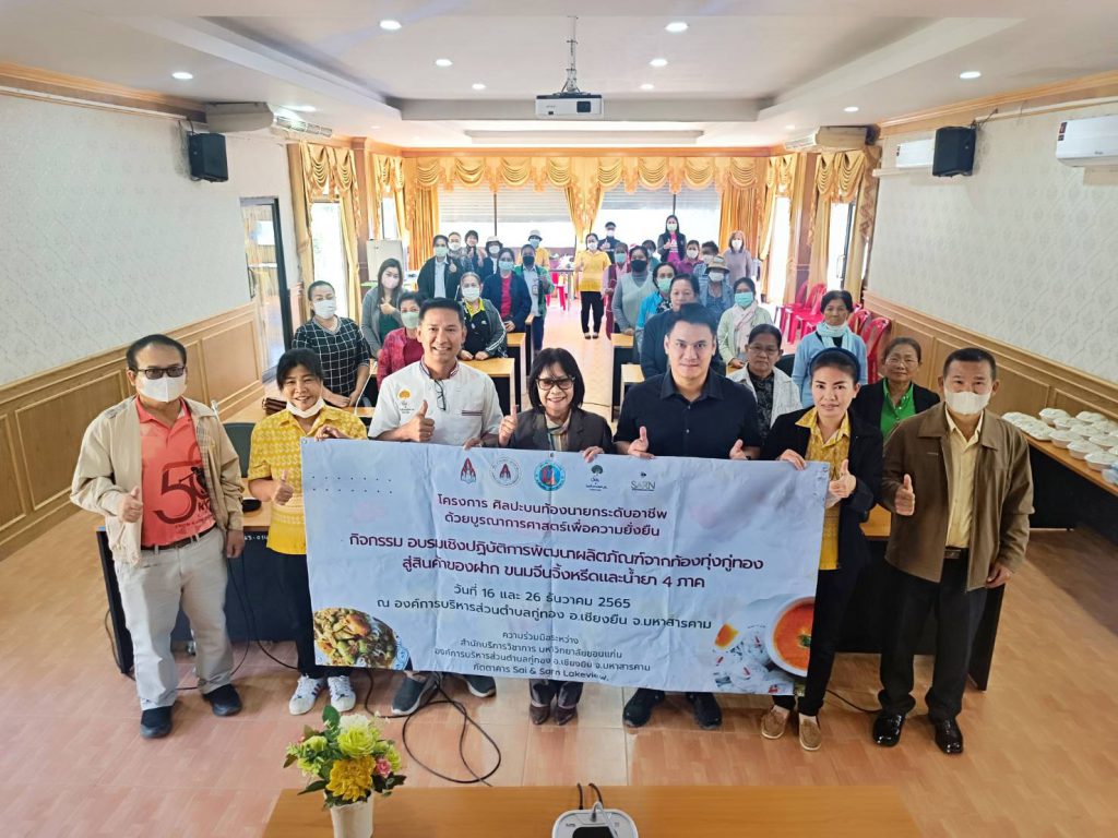 สำนักบริการวิชาการ มหาวิทยาลัยขอนแก่น จัดกิจกรรมต่อยอดขนมจีนจิ้งหรีด ครั้งที่ 2 ภายใต้โครงการศิลปะบนท้องนายกระดับอาชีพด้วยบูรณาการศาสตร์เพื่อความยั่งยืน วันที่ 19 มกราคม 2566 ณ องค์การบริหารส่วนตำบลกู่ทอง อ.เชียงยืน จังหวัดมหาสารคาม เพื่อผลิตขนมจีนจิ้งหรีดอบแห้ง และการประกอบน้ำยาขนมจีนแบบเข้มข้น โดยมี ดร.ธีรวีร์ ดิษยะไชยพงษ์ หรือ เชฟจาร์กัว ร้านสานแอนด์ไซ และ ดร.พงพันธุ์ ศรัทธาทิพย์ คณะบริหารธุรกิจและการบัญชี มหาวิทยาลัยขอนแก่น เป็นวิทยากร มีกลุ่มแม่บ้านและผู้ประกอบการ และชุมชนเข้าร่วม จำนวน 40 คน