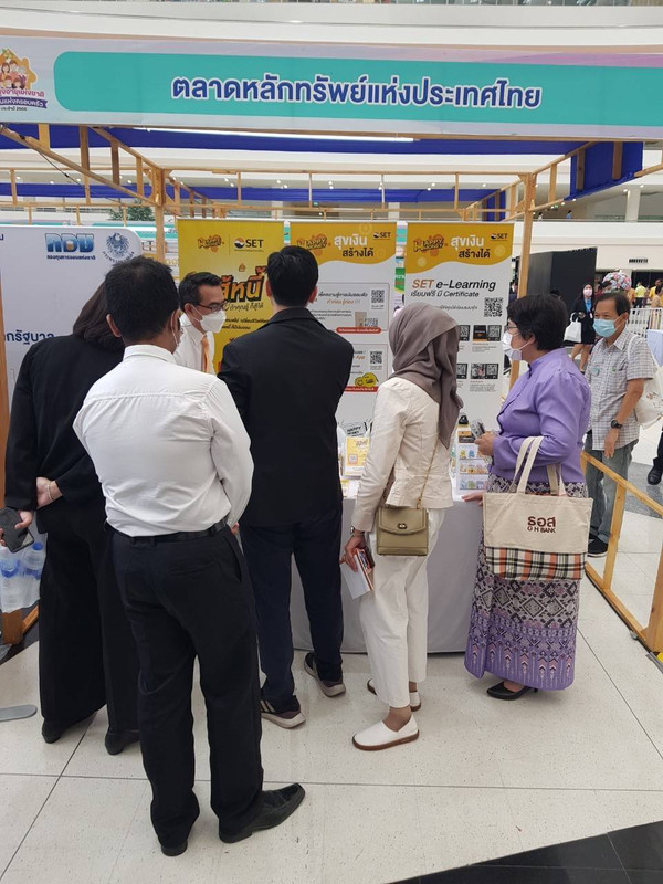 บูธตลาดหลักทรัพย์ฯ นำเสนอภายใต้แนวคิด “Happy Money สุขเงิน สร้างได้” โดยแนะนำ Happy Money Application เครื่องมือบันทึกข้อมูลทางการเงิน ทั้งสินทรัพย์-หนี้สิน รายได้-รายจ่าย ช่วยให้วางแผนการเงินได้อย่างเหมาะสม รวมถึงแหล่งเรียนรู้เพื่อเตรียมความพร้อมบริหารเงินสำหรับวัยเกษียณ ผ่านหลักสูตร SET e-Learning ใหม่ล่าสุด จำนวน 2 หลักสูตร ได้แก่ หลักสูตร “วัย 50+ เตรียมชีวิตมั่งคั่ง รับวันเกษียณ” และหลักสูตร “วัย 60+ บริหารเงินหลังเกษียณ สไตล์วัยเก๋า” หวังให้เกิดการเรียนรู้และบริหารจัดการเงินวัยเกษียณได้พอใช้ นำไปสู่การมีชีวิตหลังเกษียณอย่างมีความสุข สำหรับผู้ที่สนใจวางแผนการเงินและผู้ใกล้เกษียณ สามารถเข้าเรียนฟรี มีวุฒิบัตร ที่ www.set.or.th/elearning และแอปพลิเคชัน “SET App”