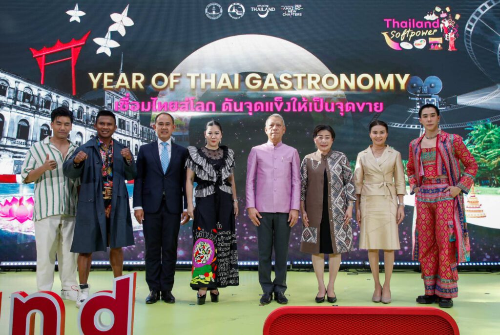 ภายในงานแถลงข่าวฯ ททท. ยังได้เปิดตัวแคมเปญ Year of Thai Gastronomy ตอกย้ำปีท่องเที่ยวไทย 2566 สะท้อนความสมบูรณ์ของวัฒนธรรมอาหารไทย ชวนนักท่องเที่ยวเดินทางท่องเที่ยวตามรอยอาหารถิ่นทั่วไทย พบกับส่วนลดร้านอาหารทั่วประเทศ จำนวน 350 ร้าน และจุดสแกน QR Code เพื่อรับส่วนลดมากมาย รวมทั้งจะนำเสนอวัฒนธรรมอาหารในทุกพื้นที่การจัดงาน  มีการเปิดเวทีเสวนาหัวข้อ “Soft Power Tourism Booster Shot” โดยมี นางสาวฐาปนีย์ เกียรติไพบูลย์ รองผู้ว่าการด้านตลาดในประเทศ ททท. พีช-ภูณทัศน์ วิวัฒพัฒนอนันต์ อินฟลูเอ็นเซอร์ ด้านอาหาร เขื่อน-ภัทรดนัย เสตสุวรรณ อินฟลูเอ็นเซอร์ ด้านแฟชั่น และบัวขาว-สมบัติ บัญชาเมฆ ด้านมวยไทย ร่วมแลกเปลี่ยนประสบการณ์และข้อมูล Soft Power แต่ละด้าน  ทั้งนี้ ททท. ยังได้นำร่องจัดกิจกรรม “Thailand Soft Power Week” ออกบูธกิจกรรมและจำหน่ายสินค้าและบริการด้านการท่องเที่ยว พร้อมจัดโชว์พิเศษ Soft Power 5F ระหว่างวันที่ 13 – 19 มิถุนายน พ.ศ.2566 ณ Quartier Avenue ชั้น G ศูนย์การค้า The EmQuartier