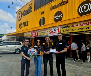 นายประพัฒน์ อัศวาดิศยางกูร (คนกลาง) กรรมการบริษัท ผู้จัดการฝ่ายขายและการตลาดประจำภูมิภาค บริษัท เอฟเอ็มพี กรุ๊ป (ประเทศไทย) จำกัด ผู้ผลิตและจัดจำหน่าย ผ้าเบรกเบ็นดิกซ์ ร่วมแสดงความยินดีในวันเปิดศูนย์บริการบีควิกใหม่ 2 สาขา คือ สาขา อุดรธานี เป็นสาขาที่ 232 สาขากล้วยน้ำไท โดยตั้งอยู่ภายในพื้นที่ปั๊มน้ำมันบางจาก เป็นสาขาที่ 233 เพื่อให้ครอบคลุมและเข้าถึงลูกค้าในพื้นที่มากยิ่งขึ้น