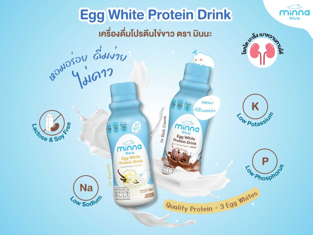 “ จากประสบการณ์ตรงที่เรามีคนในครอบครัวเป็นผู้ป่วยโรคไต ต้องฟอกเลือดอาทิตย์ละ 3 วัน ซึ่งมีความจำเป็นต้องบริโภคโปรตีนจากแหล่งคุณภาพที่ดีโดยเฉพาะไข่ขาวและเนื้อปลา ทำให้เราเข้าใจและรับรู้ถึงความยากลำบากที่เกิดขึ้น เพราะธรรมชาติของโรคนี้ได้สร้างข้อจำกัดมากมายในการทานอาหาร ทำให้ผู้ป่วยขาดความสุขในการใช้ชีวิตประจำวัน  เราจึงได้ทำการวิจัยและพัฒนาผลิตภัณฑ์จากโปรตีนไข่ขาวขึ้นอีกหนึ่งแบรนด์ โดยผสมผสานคุณค่าจากโปรตีนคุณภาพดีเข้ากับโภชนาการที่มีประสบการณ์ด้านอาหารเพื่อส่งมอบรสสัมผัสของอาหารที่สร้างความสุขให้กับผู้ป่วยภายใต้แบรนด์ “มินนะ” (みんな)  ด้วยเครื่องดื่มโปรตีนไข่ขาวรสวานิลลา และริชโกโก้ (โกโก้เข้มข้น) เหมาะกับทุกคนที่ต้องการ “อัลบูมิน” หรือโปรตีนสำคัญที่พบในไข่ขาว และยังมีโซเดียม (Na) โพแทสเซียม (K) และฟอสฟอรัส (P) ในปริมาณต่ำ รวมทั้งไม่มีแลคโตส และถั่วเหลือง  และผลิตภัณฑ์ไส้กรอกปลาผสมไข่ขาว ”