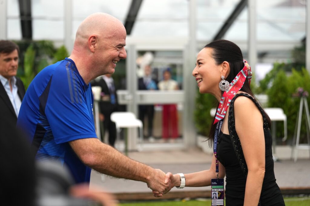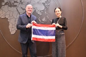 “มาดามแป้ง” นวลพรรณ ล่ำซำ นายกสมาคมฯ ร่วมให้กำลังใจและชมการแข่งขัน ฟุตบอลนัดพิเศษ FIFA Congress Delegation Football Tournament ที่ จานนี อินฟานติโน ประธานฟีฟ่า นำทัพอดีตตำนานฟีฟ่า ร่วมแข่งขันกับ ผู้นำองค์กรลูกหนัง 6 ทวีป และทีมสมาคมกีฬาฟุตบอลฯ ณ ราชกรีฑาสโมสร (RBSC) ซึ่งเป็นส่วนหนึ่งในกิจกรรมของงาน ฟีฟ่า ครองเกรส ครั้งที่ 74