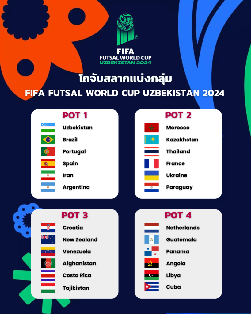 สหพันธ์ฟุตบอลนานาชาติ หรือ FIFA เตรียมจัดพิธีจับสลากแบ่งสายการแข่งขัน ฟุตซอลโลก 2024 (2024 FIFA Futsal World Cup) ที่ จตุรัส เรกิสถาน ในเมือง ซามาร์กันด์ ประเทศ อุซเบกิสถาน ในวันที่ 26 พฤษภาคม 2567 เวลา 23.00 น. ตามเวลาประเทศไทย