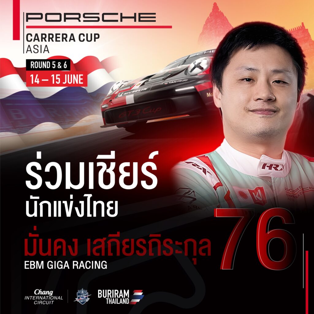 นายตนัยศิริ ชาญวิทยารมณ์ กรรมการผู้อำนวยการ สนามช้าง อินเตอร์เนชั่นแนล เซอร์กิต กล่าวว่า “การมาถึงของกองทัพรถแข่งในแต่ละรายการ กลายเป็นภาพที่แฟนความเร็วรอคอย โดยเฉพาะ “ปอร์เช่ คาร์เรร่า คัพ เอเชีย” ถือเป็นหนึ่งในเรซที่ได้รับความนิยมอย่างสูง แข่งขันด้วยรถแข่ง ปอร์เช่ 911 จีที3 คัพ (Type 992) ยนตรกรรมสายพันธุ์สปอร์ต เวอร์ชั่นล่าสุด รถในฝันที่ถูกใจแฟนความเร็วทั่วโลก ด้วยรูปทรงที่ดุดัน เร้าใจด้วยความสามารถในรูปแบบรถแข่งอย่างเต็มพิกัด นอกจากนี้ ยังมี “เทอร์โบ” มั่นคง เสถียรถิระกุล นักแข่งไทยหนึ่งเดียวในรายการนี้ที่ลงแข่งขันในคลาส Am ภายใต้สังกัด อีบีเอ็ม จิ๊กะ เรซซิ่ง หมายเลข 76 ขอเชิญแฟนๆ ร่วมส่งแรงใจเชียร์นักแข่งไทยคว้าชัยในโฮมเรซให้ได้ครับ”