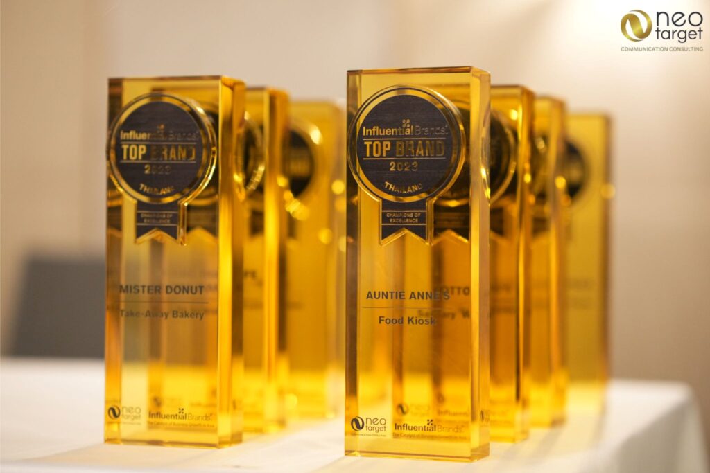 สำหรับแบรนด์ที่ได้รับคัดเลือกเข้ารับรางวัล แบ่งเป็น 4 ประเภท ดังนี้ แบรนด์ที่ทรงอิทธิพลต่อผู้บริโภคมากที่สุด (Top Influential Brand) ได้แก่ Auntie Anne’s, Bangkok Life Assurance, Cafe Amazon, Cotto, Fun-O, Good Mate, Lamina, Lotus’s, Mae Pranom, Mister Donut, Muang Thai Life Assurance, S&P, Thai Life Insurance, Three Lady cook และ Tivoli แบรนด์ที่โดดเด่นประจำปี (Outstanding Brands) ได้แก่ FWD และ SCG Logistics รางวัลสุดยอดผู้นำ ซีอีโอแห่งปี (Top CEO) ได้แก่ Muang Thai Life Insurance, Thai Life Insurance, Q-Advertising และ Phoenix QC และรางวัล Top Employers ได้แก่ Tops
