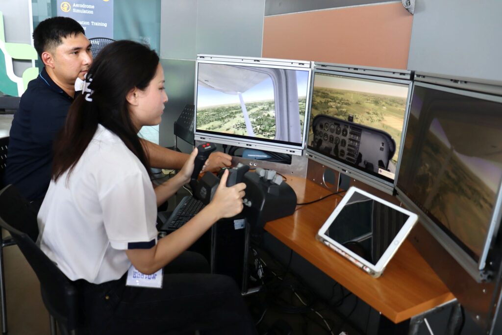 “จากข้อมูลที่น่าสนใจของสำนักงานสภานโยบาย การอุดมศึกษา วิทยาศาสตร์ วิจัยและนวัตกรรม (สอวช.) ซึ่งได้ทำการสำรวจความต้องการบุคลากรทักษะสูงใน 10 อุตสาหกรรมเป้าหมาย 2568-2572 พบว่าอุตสาหกรรม ที่มีความต้องการมากที่สุด คือ อุตสาหกรรมการบินและโลจิสติกส์ จำนวนกว่า 440,573 ตำแหน่ง โดยเฉพาะอย่างยิ่งในด้าน Customer Service และด้านเทคโนโลยีการบิน ด้วยเหตุนี้ หลักสูตรต่าง ๆ ไม่ว่าจะเป็น ธุรกิจการบิน การจัดการเทคโนโลยีการบินและการอำนวยการบิน รวมถึง Co-Creation : Pilot Pathway ที่วิทยาลัยฯ ได้พัฒนาขึ้น จึงตอบสนองต่อความต้องการแรงงานในภาคส่วนนี้โดยตรง” อาจารย์ปวรรัตน์ กล่าว