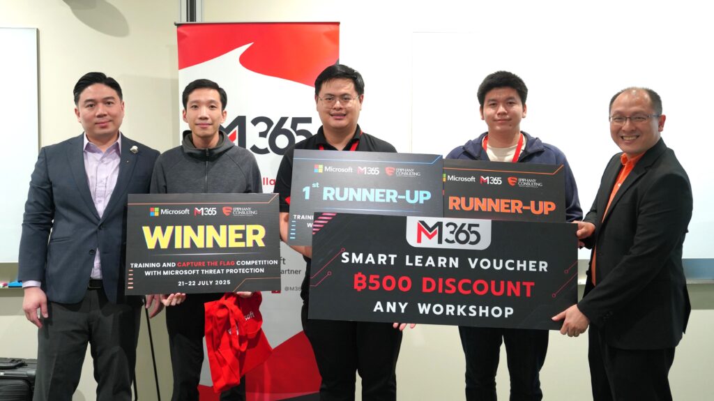 นายนพชัย ตั้งไตรธรรม กรรมการผู้จัดการ บริษัท เอ็ม 365 (ประเทศไทย) จำกัด เปิดเผยว่า เมื่อเร็วๆ นี้ บริษัท เอ็ม 365 (ประเทศไทย) จำกัด (www.m365.co.th)  ซึ่งเป็นผู้จัดหาโซลูชันและบริการระดับมืออาชีพ บนแพลตฟอร์ม ไมโครซอฟท์ 365 และเป็น Solution Partner ประเภท Modern Work และ Security ของไมโครซอฟท์ ได้จัดโครงการอบรมและแข่งขันตรวจจับภัยไซเบอร์ ในรูปแบบ Capture The Flag หรือ CTF ด้วยไมโครซอฟท์ เทรด โพรเทคชัน  โซลูชัน (Microsoft Threat Protection Solutions)  ระหว่างวันที่ 20-21 กรกฎาคม 2568 ที่ผ่านมา  ณ บริษัท ไมโครซอฟท์ (ประเทศไทย) จำกัด