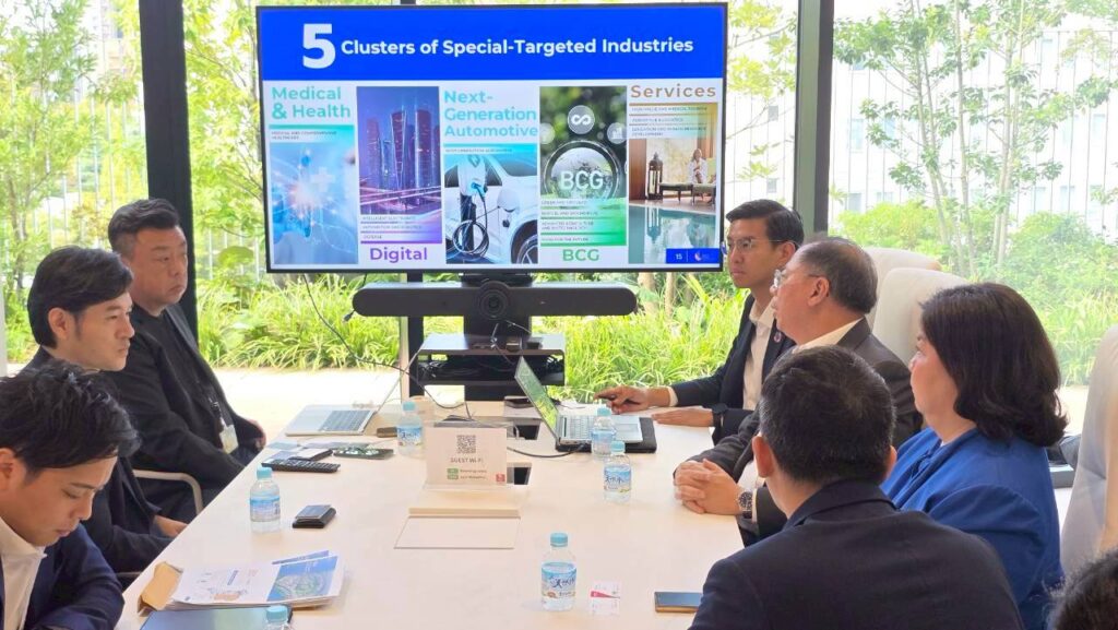ดร. จุฬา สุขมานพ เลขาธิการคณะกรรมการนโยบายเขตพัฒนาพิเศษภาคตะวันออก (สกพอ.) นำคณะเดินทางเยือนนครโอซากา ระหว่างวันที่ 5 – 11 ตุลาคม 2568 ที่ผ่านมา ร่วมกับการนิคมอุตสาหกรรมแห่งประเทศไทย (กนอ.) เพื่อชักชวนการลงทุนในกลุ่มอุตสาหกรรม Bio-Circular-Green (BCG) อุตสาหกรรมการแพทย์ การพัฒนาเมืองใหม่ ซึ่งในระหว่างการจัดกิจกรรมฯ ได้ประชุมร่วมกับผู้บริหารระดับสูงของกลุ่มบริษัทชั้นนำ ได้แก่ Mitsubishi Group, Sakura Internet, Kansai Electric, Sharp Corporation และ Daikin และองค์กรชั้นนำด้านอุตสาหกรรมการแพทย์ ได้แก่ Nakanoshima Qross โดย สกพอ. และ กนอ. ได้ร่วมกันนำเสนอความพร้อมในการรองรับการลงทุน การสนับสนุนด้านสิทธิประโยชน์ในด้านภาษีและมิใช่ภาษีสำหรับการลงทุน การส่งเสริมด้านโครงสร้างพื้นฐานทั้งด้านการลงทุน และการสนับสนุนด้านวิจัยและพัฒนา ตลอดจนโอกาสในการลงทุนของอุตสาหกรรมเป้าหมายในพื้นที่เขตพัฒนาพิเศษภาคตะวันออก (อีอีซี) และประเทศไทย
