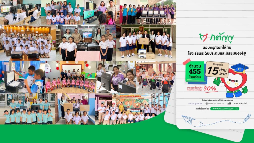 ครือ SSUP Group เดินหน้าสานต่อ “โครงการกตัญญู” ลงพื้นที่ส่งมอบครุภัณฑ์ทางการศึกษาให้กับโรงเรียนระดับประถมและมัธยมศึกษาของรัฐครบ 455 โรงเรียนทั่วประเทศ รวมมูลค่าการสนับสนุนทั้งสิ้นกว่า 15 ล้านบาท ความสำเร็จที่ยิ่งใหญ่นี้เกิดขึ้นได้จากพลังการสนับสนุนของลูกค้าทุกท่านที่ร่วมกันอุดหนุนสินค้าและบอกต่อโครงการดีๆ นี้