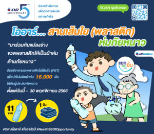 OR เชิญชวนร่วมบริจาคขวดน้ำพลาสติกใส (PET) เพื่อผลิตเป็นผ้าห่ม ผ่านโครงการ “โออาร์ สานเส้นใย (พลาสติก) ห่มภัยหนาว”