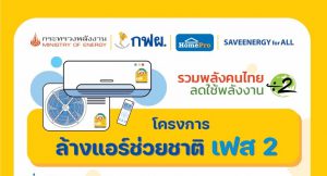 กฟผ. ร่วมกับ โฮมโปร ชวนคนไทยรวมพลังลดใช้พลังงาน ในโครงการ “ล้างแอร์ช่วยชาติ เฟส 2” แจกสิทธิ์ล้างแอร์มูลค่า 300 บาท เริ่ม 9 พ.ค. 65 นี้