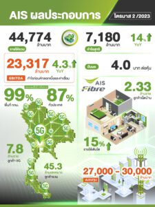 AIS โชว์ผลประกอบการไตรมาส 2/2566 แข็งแกร่ง กำไรสุทธิ 7,180 ล้านบาท โตพุ่ง 14% มุ่งเน้นนวัตกรรม คุณภาพ และการส่งมอบประสบการณ์การใช้งานที่เหนือกว่า พร้อมนำศักยภาพขับเคลื่อนเป้าหมาย Cognitive Tech-Co ตามแผน