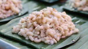 ไข่มดแดงปีนี้ราคาไม่แพง กก.ละ 500-600 บาทเท่านั้น แม่ค้าต้องจัดคอมโบเซท ไข่มดแดงคู่ผักหวานป่าและผักอีตูู่ ชุดละ 150 บาท แซบคุ้ม