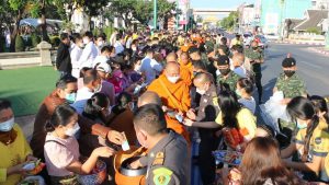 ชาวขอนแก่น พร้อมใจทำบุญตักบาตรเพื่อความเป็นสิริมงคลรับวันขึ้นปีใหม่ แน่นศาลเจ้าพ่อหลักเมือง