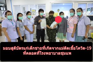 นายอำเภอชุมแพ มอบสูติบัตรแก่เด็กชายที่เกิดจากแม่ติดเชื้อโควิด-19 ที่คลอดที่โรงพยาบาลชุมแพ