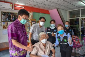 กลุ่มพิทักษ์ท้องถิ่นเทศบาลเมืองร้อยเอ็ด นำทีม อสม.ชุมขนโรงพยาบาล เดินเคาะประตูบ้าน เชิญชวนผู้สูง และกลุ่ม 8 โรคเรื้อรัง ไปฉีดวัคซีน พร้อมมอบแมสแทนความห่วงใย