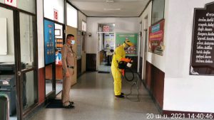 สภ.เมืองร้อยเอ็ดทำความสะอาดและฉีดพ่นยาฆ่าเชื้อสร้างความมั่นใจประชาชนที่มาใช้บริการ