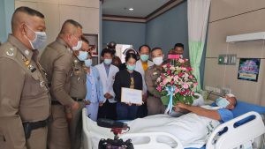 รอง ผบ.ตร.พร้อมคณะ เข้าเยี่ยมอาการของ ตำรวจถูกคนร้ายยิงบาดเจ็ด จังหวัดร้อยเอ็ด พร้อมให้นโยบายให้เพิ่มความระมัดระวังด้านการทำหน้าที่