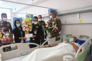 แม่ทัพภาคที่ 2 และผู้บัญชาการตำรวจภูธรภาค 4 ส่งกำลังใจให้ตำรวจกระดูกเหล็ก ที่ถูกผู้ร้ายลอบยิงขณะที่ปฏิบัติหน้าที่ จับกุมผู้ค้ายา ขณะรักษาตัวที่โรงพยาบาลร้อยเอ็ด
