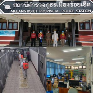 สภ.เมืองร้อยเอ็ดทำความสะอาดและฉีดพ่นยาฆ่าเชื้อสร้างความมั่นใจประชาชน