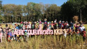 (มีคลิป) ม.ขอนแก่น โดยคณะเกษตรศาสตร์ นำนักเรียนอนุบาล 1- 2 จากโรงเรียนสาธิต มข.ลงแขกเกี่ยวข้าว