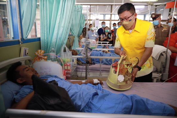 ผู้ว่าฯขอนแก่น เข้าเยี่ยมและให้กำลังใจผู้ได้รับบาดเจ็บจากรถโดยสารที่เกิดเพลิงไหม้