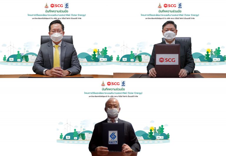 เอสซีจี และทีทีซีแอล จับมือ มทส. ติดตั้งโรงไฟฟ้าลอยน้ำจากพลังงานแสงอาทิตย์เพื่อใช้ในโรงพยาบาลมหาวิทยาลัยเทคโนโลยีสุรนารี พร้อมประกาศความร่วมมือด้านการวิจัยและพัฒนาระบบพลังงานแสงอาทิตย์ ขับเคลื่อนพลังงานสะอาดอย่างยั่งยืน ช่วยลดวิกฤติโลกร้อน