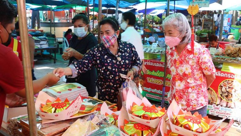 สารทจีนขอนแก่น คึกคัก คนไทยเชื้อสายจีนทยอยออกมาเลือกซื้อเครื่องไหว้ที่ตลาดเนืองแน่น ท่ามกลางมาตรการคุมเข้มโควิด-19