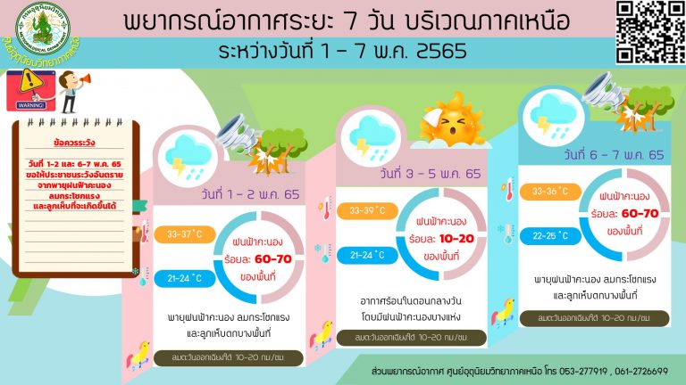 กรมอุตุนิยมวิทยา ประกาศ"พายุฤดูร้อนบริเวณประเทศไทยตอนบน"ฉบับที่ 10 ลงวันที่ 2 พฤษภาคม 2565 ว่า บริเวณความกดอากาศสูงหรือมวลอากาศเย็นกำลังปานกลางจากประเทศจีน ได้แผ่ลงมาปกคลุมประเทศไทยตอนบน และทะเลจีนใต้แล้ว ในขณะที่ประเทศไทยตอนบนมีอากาศร้อน ประกอบกับมีลมใต้และลมตะวันออกเฉียงใต้พัดนำความชื้นจากทะเลจีนใต้และอ่าวไทยเข้ามาปกคลุมบริเวณดังกล่าว และมีหย่อมความกดอากาศต่ำปกคลุมบริเวณประเทศกัมพูชา ลักษณะเช่นน