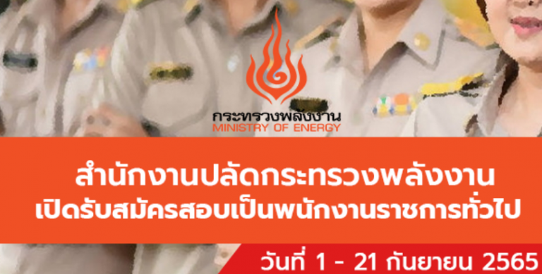 สำนักงานปลัดกระทรวงพลังงานเปิดรับสมัครพนักงานราชการทั่วไป 9 อัตรา รับสมัครทางอินเทอร์เน็ต ตั้งแต่วันที่ 1 – 21 กันยายน 2565