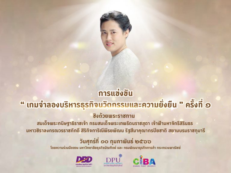 วิทยาลัยบริหารธุรกิจนวัตกรรมและการบัญชี มหาวิทยาลัยธุรกิจบัณฑิตย์ (CIBA DPU) ขอเชิญน้อง ๆ นักเรียนในระดับ ปวช. ปวส. และ ม.ปลาย เข้าร่วมการแข่งขันเกมจำลองบริหารธุรกิจนวัตกรรมและความยั่งยืน ชิงถ้วยพระราชทาน สมเด็จพระกนิษฐาธิราชเจ้า กรมสมเด็จพระเทพรัตนรา