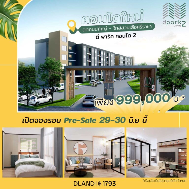 ดี-แลนด์ กรุ๊ป ปลื้มกระแสจองคอนโดเฟสใหม่ “ดีพาร์ค คอนโด 2 สวนเสือ-ศรีราชา” ดีเกินคาด!! กวาดยอดขายแล้ว 60% พร้อมลุยเปิด PRE-SALE 29 – 30 มิ.ย.นี้