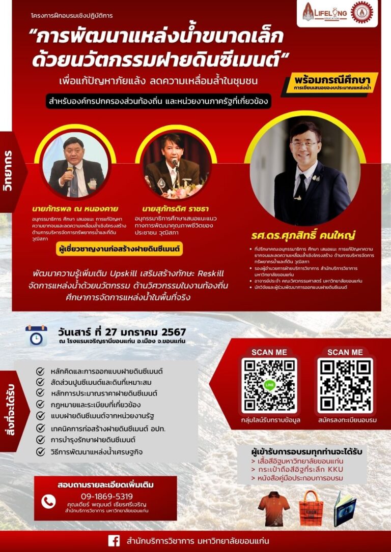 สำนักบริการวิชาการ มหาวิทยาลัยขอนแก่น ร่วมกับ โรงเรียนพัฒนาผู้นำและสร้างสันติธรรม รักสคูล จัดหลักสูตร “การเจรจาไกล่เกลี่ยข้อพิพาทก่อนฟ้องอย่างครบวงจร (ทางแพ่งและอาญา)” รุ่นที่ 1 ระหว่างวันที่ 7-9 กุมภาพันธ์ 2567 ณ โรงแรม เอส ดี อเวนิว กรุงเทพมหานคร