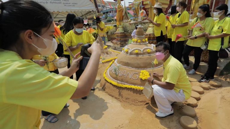ชาวขอนแก่นถือฤกษ์วันครอบครัว พาลูก-หลาน สรงกระดูกบรรพบุรุษที่วัด ขณะที่นักท่องเที่ยวยังคงร่วมกิจกรรมตบประทานขนทรายเข้าวัดและเล่นน้ำสงกรานตเออาร์ อย่างสนุกสนาน